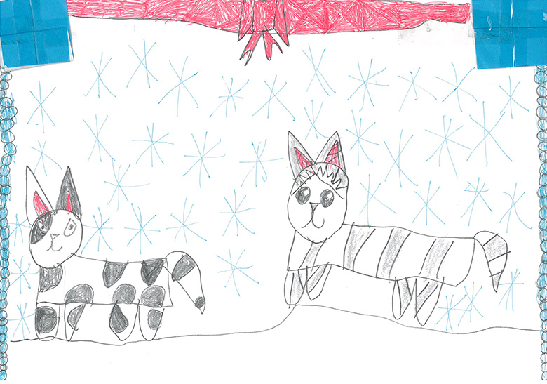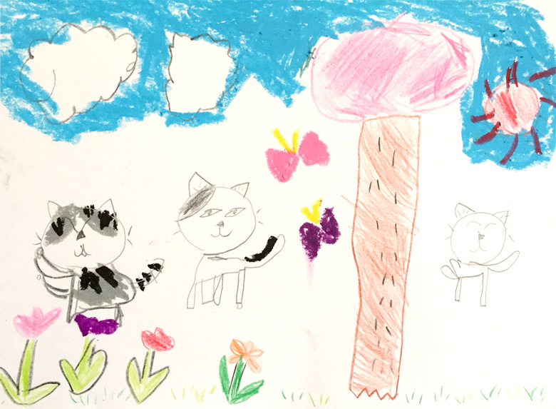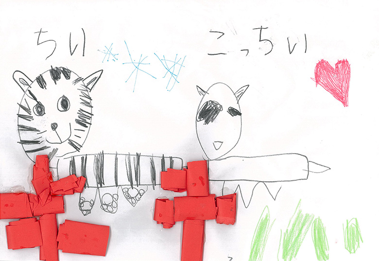 ①ご自分で描いた絵を保護者の方に写真で撮影していただき、写真をメールに添付してご投稿ください。