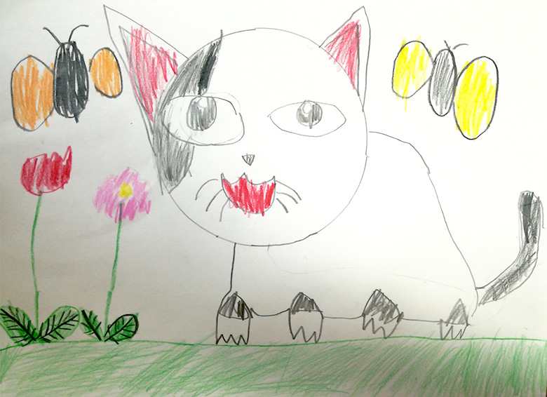 ②A4サイズ(もしくは同等の大きさ)の紙にご自分で描いた絵を保護者の方にスキャンしていただき、スキャンデータをメールにて添付ください。