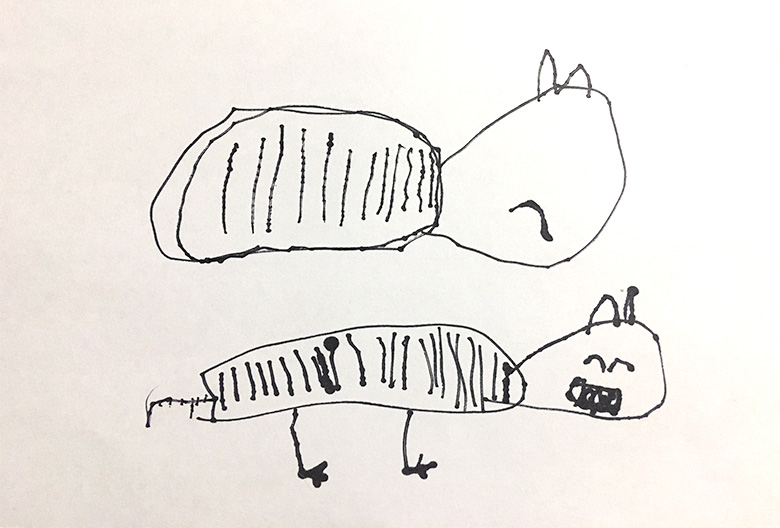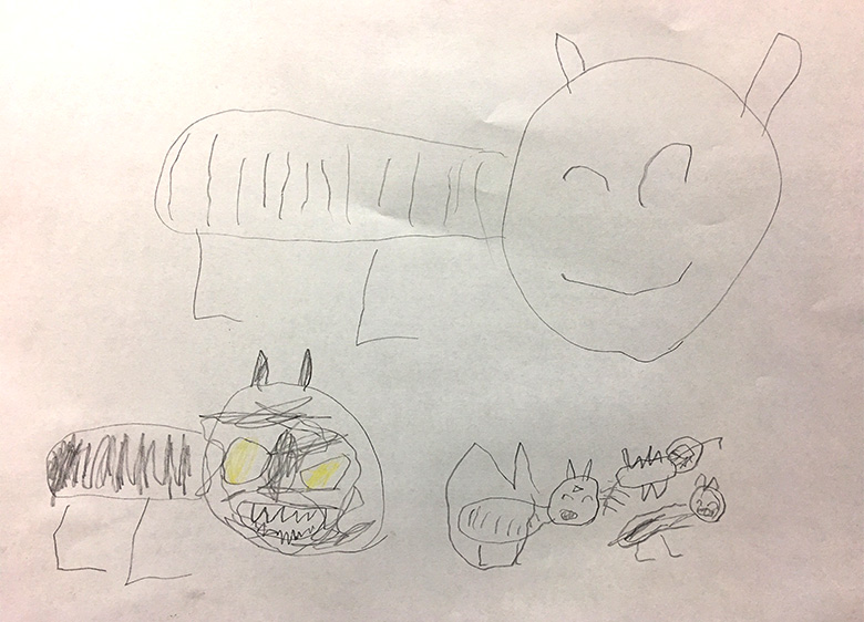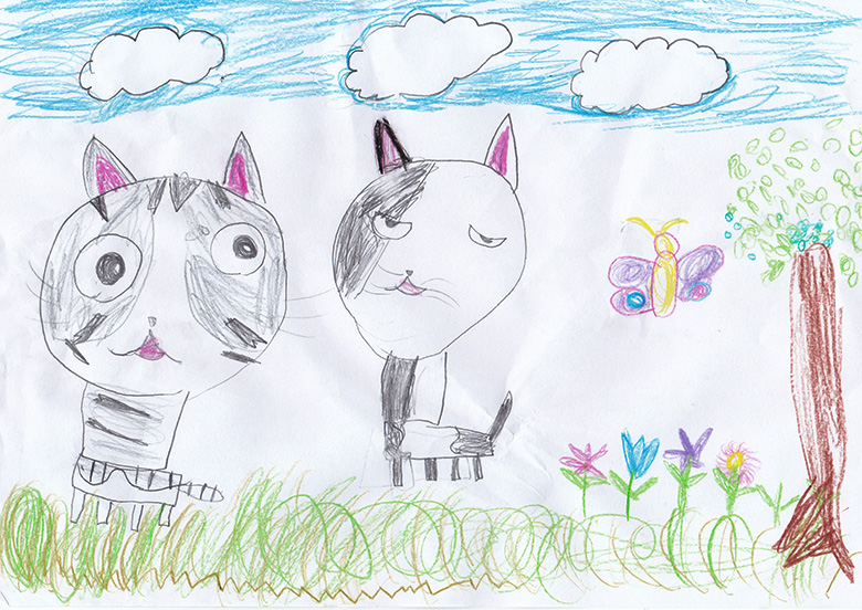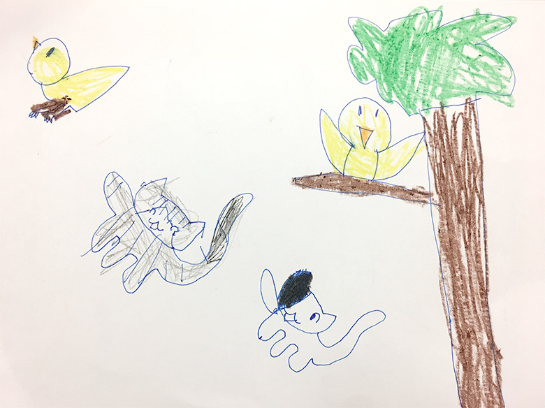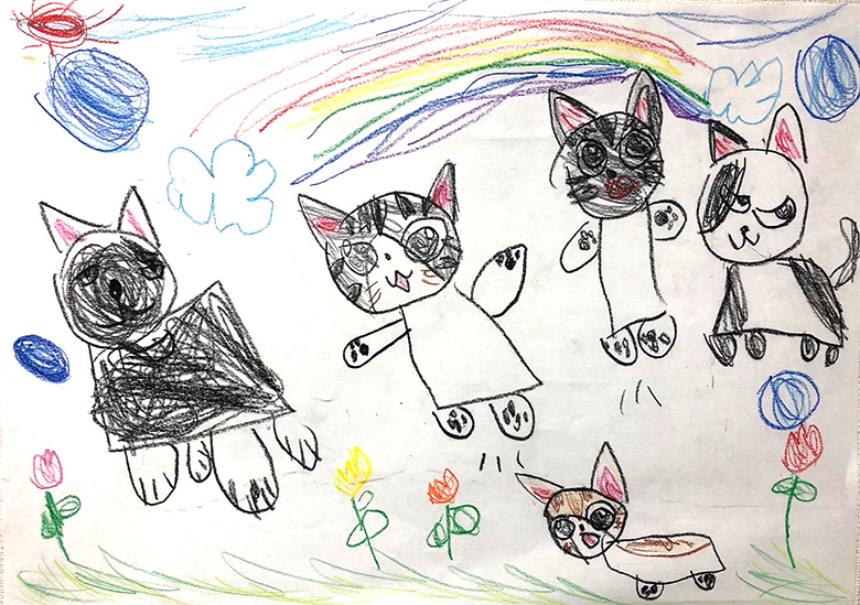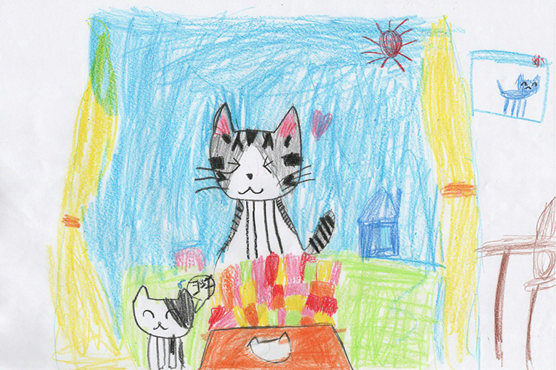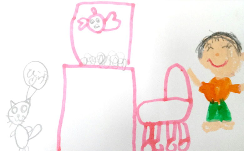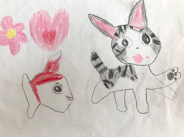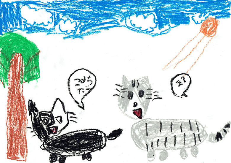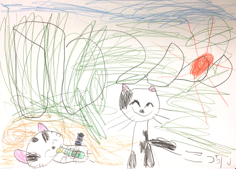 ②A4サイズ(もしくは同等の大きさ)の紙にご自分で描いた絵を保護者の方にスキャンしていただき、スキャンデータをメールにて添付ください。
