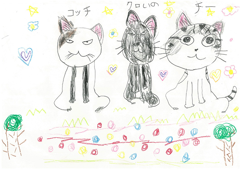 ①ご自分で描いた絵を保護者の方に写真で撮影していただき、写真をメールに添付してご投稿ください。
