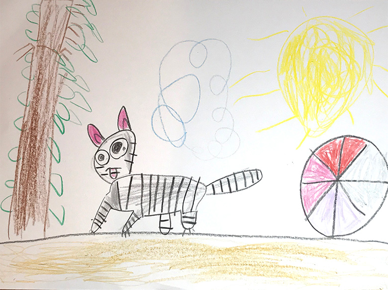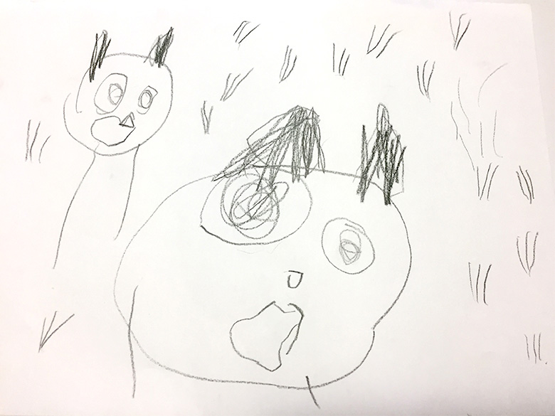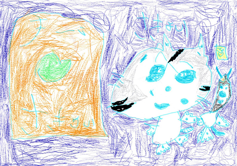 ②A4サイズ(もしくは同等の大きさ)の紙にご自分で描いた絵を保護者の方にスキャンしていただき、スキャンデータをメールにて添付ください。