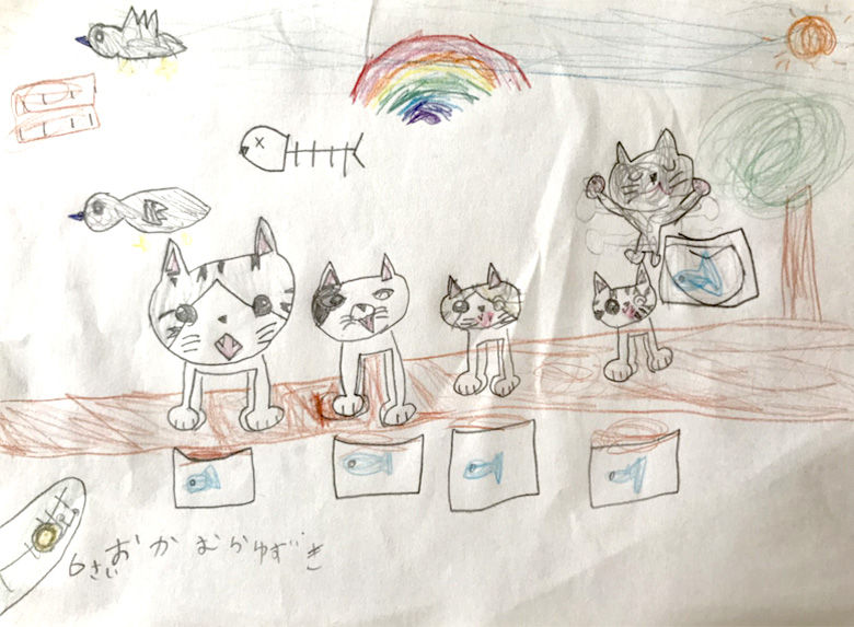 ①ご自分で描いた絵を保護者の方に写真で撮影していただき、写真をメールに添付してご投稿ください。