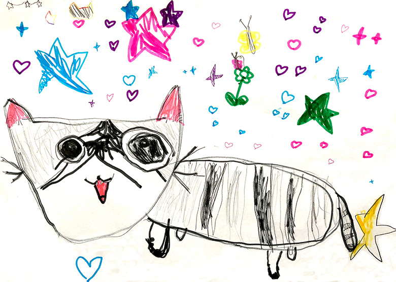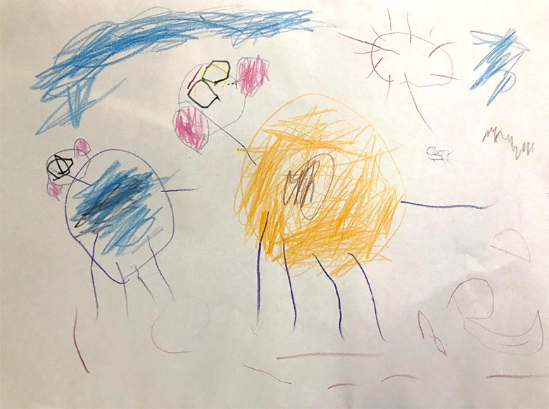 ②A4サイズ(もしくは同等の大きさ)の紙にご自分で描いた絵を保護者の方にスキャンしていただき、スキャンデータをメールにて添付ください。