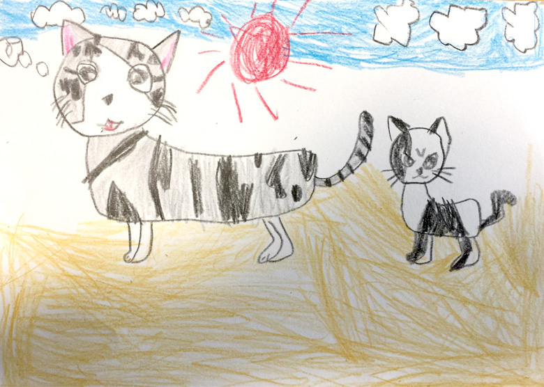 ①ご自分で描いた絵を保護者の方に写真で撮影していただき、写真をメールに添付してご投稿ください。