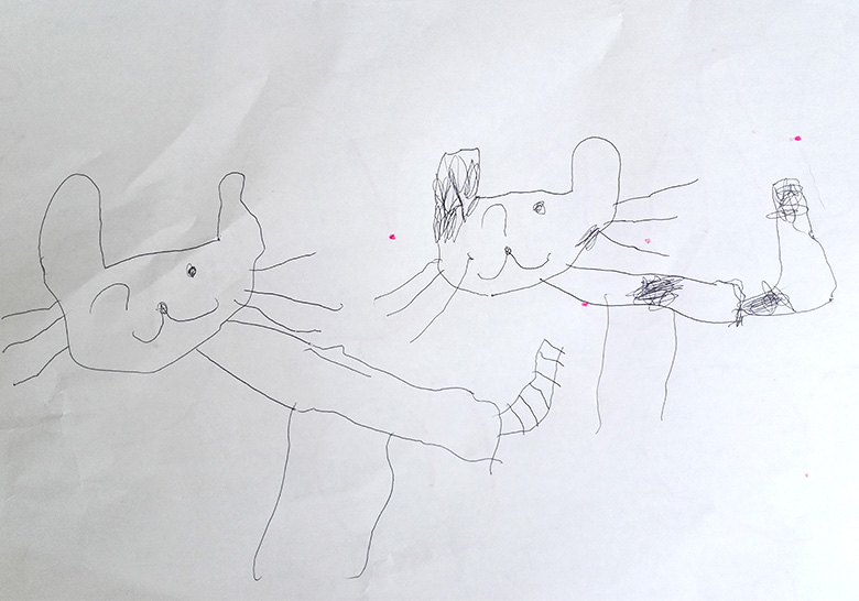 ②A4サイズ(もしくは同等の大きさ)の紙にご自分で描いた絵を保護者の方にスキャンしていただき、スキャンデータをメールにて添付ください。